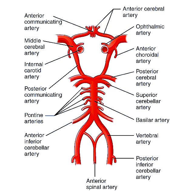- Made up of ACA (A1), ACOM, ICA, PCOM, PCA (P1), and Basilar artery tip.